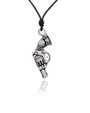 Hand Gun Pistol Silver Pewter Charm Necklace Pendant Jewelry