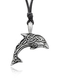 New Celtic Tatoo Dolphin Silver Pewter Charm Necklace Pendant Jewelry