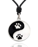 New Dog Paws Yin Yang Silver Pewter Charm Necklace Pendant Jewelry
