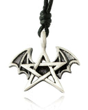 Winged Pentagram Silver Pewter Charm Necklace Pendant Jewelry