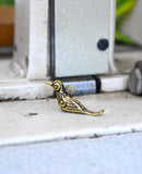 Handcrafted with precision, each piece showcases the intricate details of the bird's feathers, wings, and gentle posture. The warm, vintage appeal of the gold brass material adds a touch of rustic elegance, making it a versatile accessory that complements any outfit.