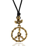 Peace Sign Roses Handmade Pewter Gold Brass Necklace Pendant Jewelry