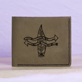 - This leather wallet is hand-cut and hand-stitched from natural leather without use of any machine which gives it a very simple but unique look. This one is suitable for all kinds of occasions. Especially, the wallet is burned pattern onto the surface that makes the wallet look more unique. To this kind of leather type, the scratch makes item look retro style, and it is easy to deal with, if you don't like the scratch on surface. This wallet will be the best choice when you need more than just a simple card wallet. This is a simple, clean, traditional design wallet including six card slots, one bill pocket with full size, and ID window, made with high quality durable leather to meet your daily needs.