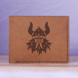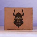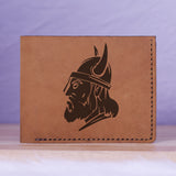 Men's Viking Head Natural Genuine Leather Blocking Bifold Wallet MHLT_