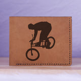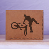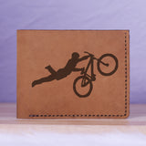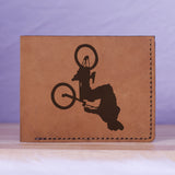 Men's Bmx And Mtb Rider Natural Genuine Leather Blocking Bifold Wallet