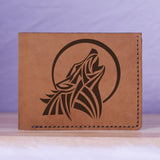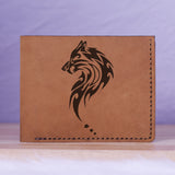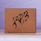 Men's Wolf Abstract Natural Genuine Leather Blocking Bifold Wallet MHL