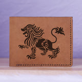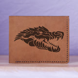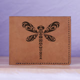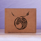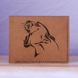 - This leather wallet is hand-cut and hand-stitched from natural leather without use of any machine which gives it a very simple but unique look. This one is suitable for all kinds of occasions. Especially, the wallet is burned pattern onto the surface that makes the wallet look more unique. To this kind of leather type, the scratch makes item look retro style, and it is easy to deal with, if you don't like the scratch on surface. This wallet will be the best choice when you need more than just a simple card wallet. This is a simple, clean, traditional design wallet including six card slots, one bill pocket with full size, and ID window, made with high quality durable leather to meet your daily needs.