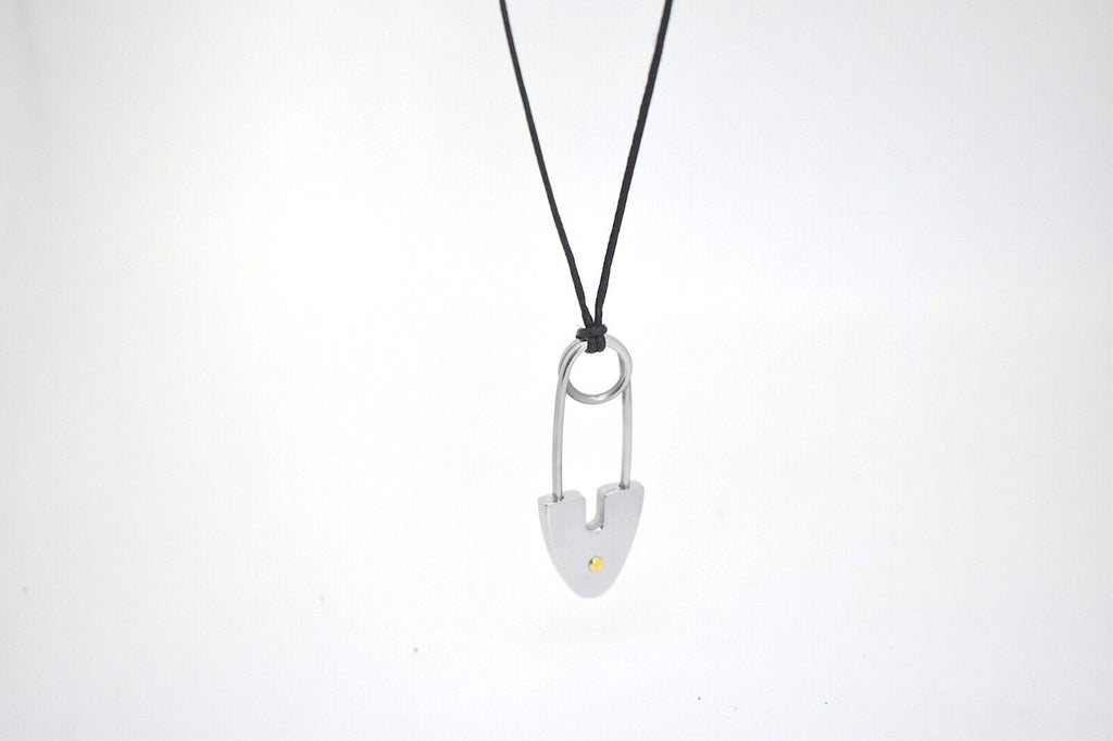 Lovely Safety Pin Stainless Steel & 18K Gold Necklace Pendant Jewelry