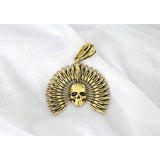 Indian Gothic Skull With Feather Headdress Gold Brass Necklace Pendant