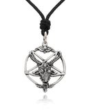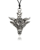 Pagan Goat Head Silver Pewter Charm Necklace Pendant Jewelry With Cotton Cord