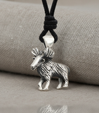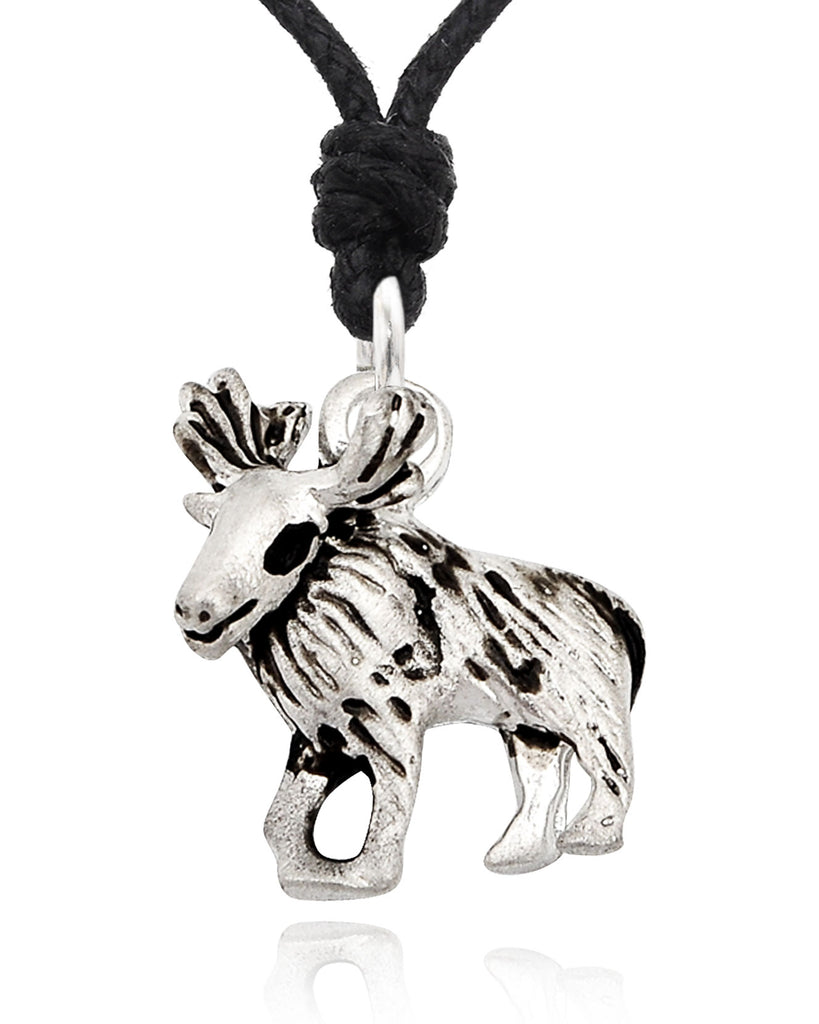 Reindeer Moose Silver Pewter Charm Necklace Pendant Jewelry With Cotto