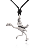 Flamingo Silver Pewter Charm Necklace Pendant Jewelry With Cotton Cord