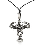 Gothic Skeleton and Serpent Silver Pewter Charm Necklace Pendant Jewel