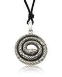 Snake Lying In Circle 92.5 Sterling Silver Gold Brass Charm Necklace P