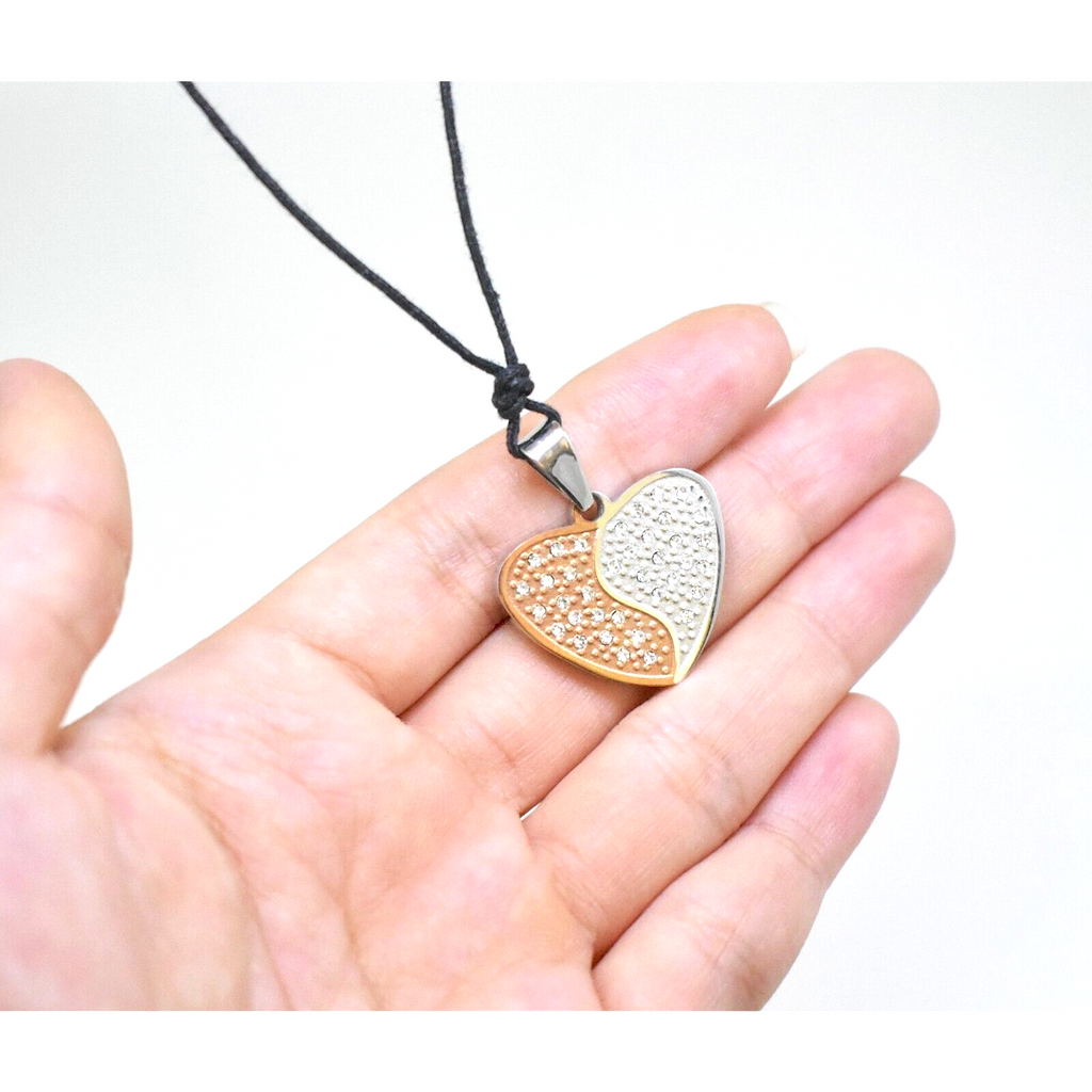 • Lovely Heart Stainless Steel Brass Charm Necklace Pendant Jewelry