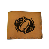 - This leather wallet is hand-cut and hand-stitched from natural leather without use of any machine which gives it a very simple but unique look. This one is suitable for all kinds of occasions. Especially, the wallet is burned pattern onto the surface that makes the wallet look more unique. To this kind of leather type, the scratch makes item look retro style, and it is easy to deal with, if you don't like the scratch on surface. This wallet will be the best choice when you need more than just a simple card wallet. This is a simple, clean, traditional design wallet including six card slots, one bill pocket with full size, and ID window, made with high quality durable leather to meet your daily needs.