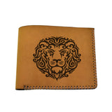 - This leather wallet is hand-cut and hand-stitched from natural leather without use of any machine which gives it a very simple but unique look. This one is suitable for all kinds of occasions. Especially, the wallet is burned pattern onto the surface that makes the wallet look more unique. To this kind of leather type, the scratch makes item look retro style, and it is easy to deal with, if you don't like the scratch on surface. This wallet will be the best choice when you need more than just a simple card wallet. This is a simple, clean, traditional design wallet including six card slots, one bill pocket with full size, and ID window, made with high quality durable leather to meet your daily needs.