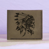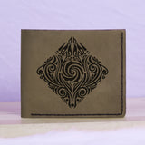 - This leather wallet is hand-cut and hand-stitched from natural leather without use of any machine which gives it a very simple but unique look. This one is suitable for all kinds of occasions. Especially, the wallet is burned pattern onto the surface that makes the wallet look more unique. To this kind of leather type, the scratch makes item look retro style, and it is easy to deal with, if you don't like the scratch on surface. This wallet will be the best choice when you need more than just a simple card wallet. This is a simple, clean, traditional design wallet including six card slots, one bill pocket with full size, and ID window, made with high quality durable leather to meet your daily needs.