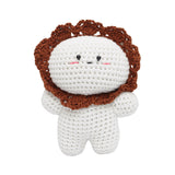 The baby lion is in white yarn. This is an ideal set of birthday or baby gift. This is just the right size to put on top of your computer or desk. Own it and enjoy!