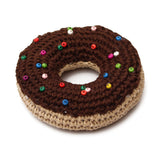 This unusual toy is crocheted of acrylic threads. It is decorated with colorful breads. Any little girl adores playing "kitchen". Replenish your daughter's collection of toys with this sweet donut and your child will definitely use it in her everyday games.
