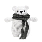 Come and meet a soft stuffed bear which is handmade in white yarn.Attaching a grey scarf, this bear gets cuter. It is an ideal present for birthday or baby gift and also makes a great addition to anyone who love stuffed animal toys.