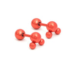 1 Red Powder Coated Stainless Three Studs Earrings Body Piercing Jewelry