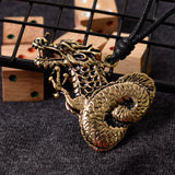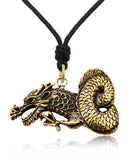 Spiral Tail Dragon Silver Pewter Gold Brass Charm Necklace Pendant Jewelry
