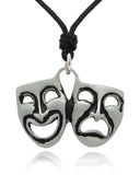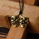 Drama Theater Masks Silver Pewter Gold Brass Necklace Pendant Jewelry