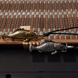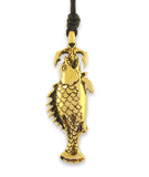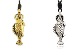 Fish Swallowing Sword Silver Pewter Gold Brass Charm Necklace Pendant Jewelry