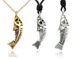 • Stylish Fish Skeleton Silver Pewter Gold Brass Charm Necklace Pendant Jewelry
