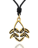 Cute Couple Leaves Handmade Gold Brass Necklace Pendant Jewelry