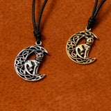 Celtic Moon and Cat Silver Pewter Gold Brass Charm Necklace Pendant Jewelry