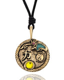 • Crystal Dragon Yin Yang Silver Pewter Gold Brass Pewter Necklace Pendant Jewelry