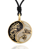 Dragon Tiger Yin Yang Best Friend Handmade Pewter Brass Necklace Pendant Jewelry
