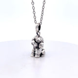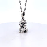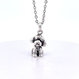 The "Vintage Cute Teddy Dog" pendant gracefully dangles from a sterling silver chain, designed for both style and comfort. The chain's length is ideal for showcasing the pendant without overwhelming your neckline, making it suitable for various occasions.