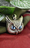 Vintage Gothic Owl Blue Eyes Large Size Sterling Silver Gold Brass Pendant Necklace