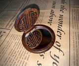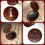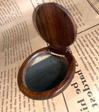 Mini Handcrafted Wooden Retro Round Mirror Makeup Mirror for Women Girls Travel Daily Use