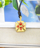 Cross With Flaming Dice Handmade Gold Brass Necklace Pendant Jewelry
