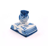 • Blue Owl Bird On the Book Figurine Ceramic Tiny Handicraft Miniature Dollhouse