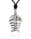 Flower Fish Skeleton Silver Pewter Charm Necklace Pendant Jewelry