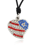 American Sweet Heart Flag Silver Pewter Charm Necklace Pendant Jewelry