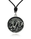 Stylish Year of the Dragon Silver Pewter Charm Necklace Pendant Jewelry With Cotton Cord