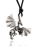 Trendy Fire Dragon Silver Pewter Charm Necklace Pendant Jewelry