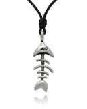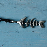 Cute Fish Skeleton Silver Pewter Charm Necklace Pendant Jewelry