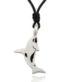Flat Killer Whale Silver Pewter Charm Necklace Pendant Jewelry With Cotton Cord