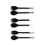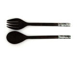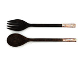 Myanmar Palm Wood Salad Fork & Spoon With Mother of Pearl Inlay Round Handle