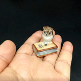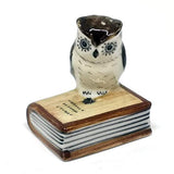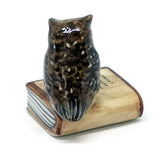 Owl Figurine Ceramic Brown Bird on Book Tiny Handicraft Miniature Dollhouse