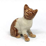 Porcelain Brown Tiger Cat Figurine Handmade Miniatures Collectible Ceramic