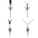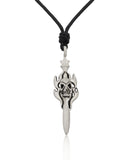 Skeleton Skull Head Sword Silver Pewter Charm Necklace Pendant Jewelry