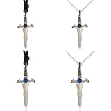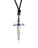 Blue & Black Sword Silver Pewter Charm Necklace Pendant Jewelry